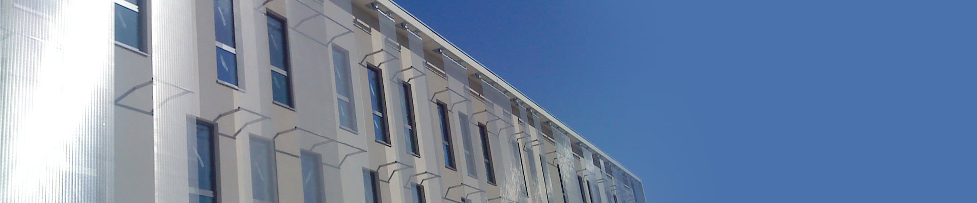 To shade the rooms from the glaring sun, varying widths of weave type EGLA-MONO 4211 were installed in front of all windows.