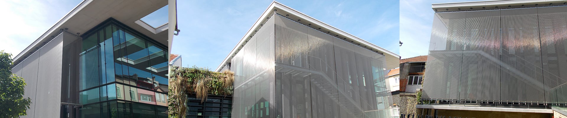One part of the modern glass façade received a cladding made of W.S. Tyler Architectural Mesh EGLA-TWIN 4243. Architectural Mesh offers versatile fields of applications, not only due to its aesthetic but also due to its functional characteristics. In this case, the metal mesh EGLA-TWIN was chosen as fall protection and a sunscreen; however, it also offers fascinating optical effects. Because of its smooth surface, it creates flat light reflections. And, with a solar transmission of 40% at an incidence angle of 60°, it also serves as effective sun protection. But, despite efficient shading, the large canopy offers good visual transparency when viewed from the inside.